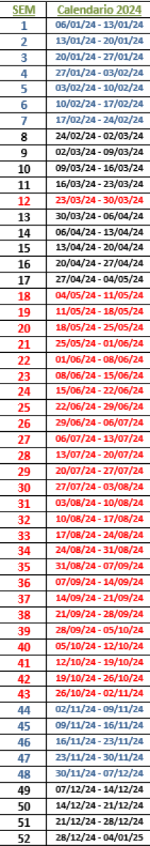CALENDARIO ANUAL DE SEMANAS 2024