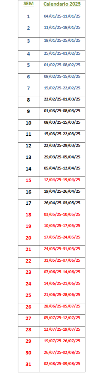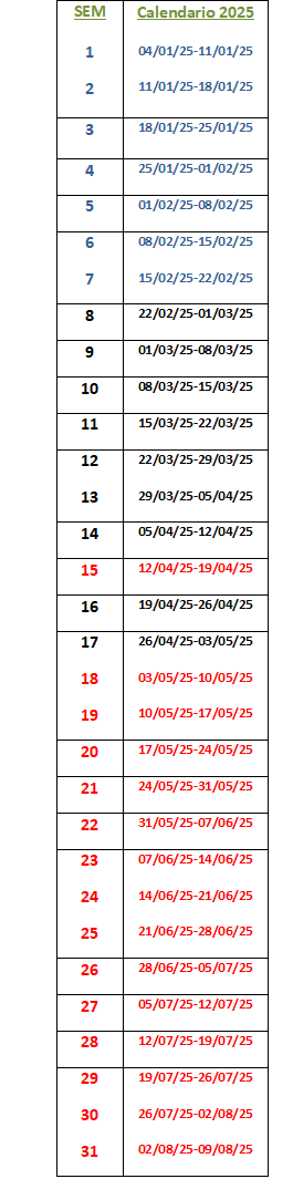 CALENDARIO ANUAL DE SEMANAS 2025