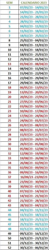 CALENDARIO ANUAL DE SEMANAS 2023