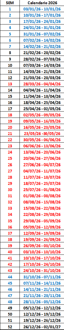 CALENDARIO ANUAL DE SEMANAS 2026